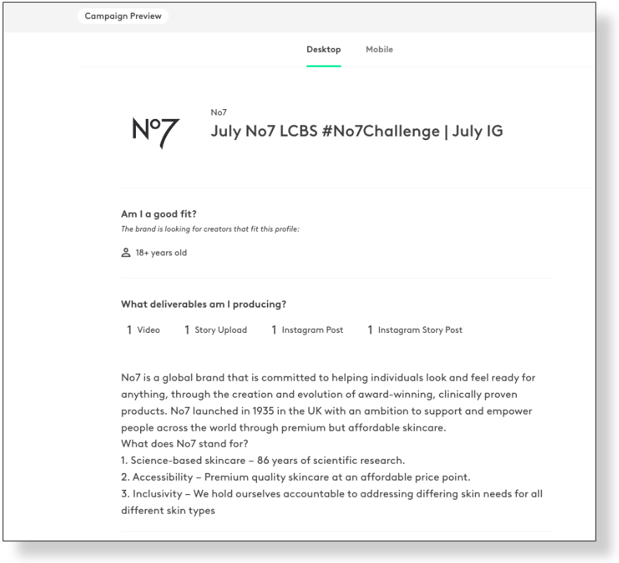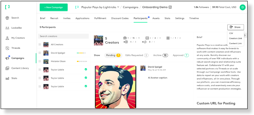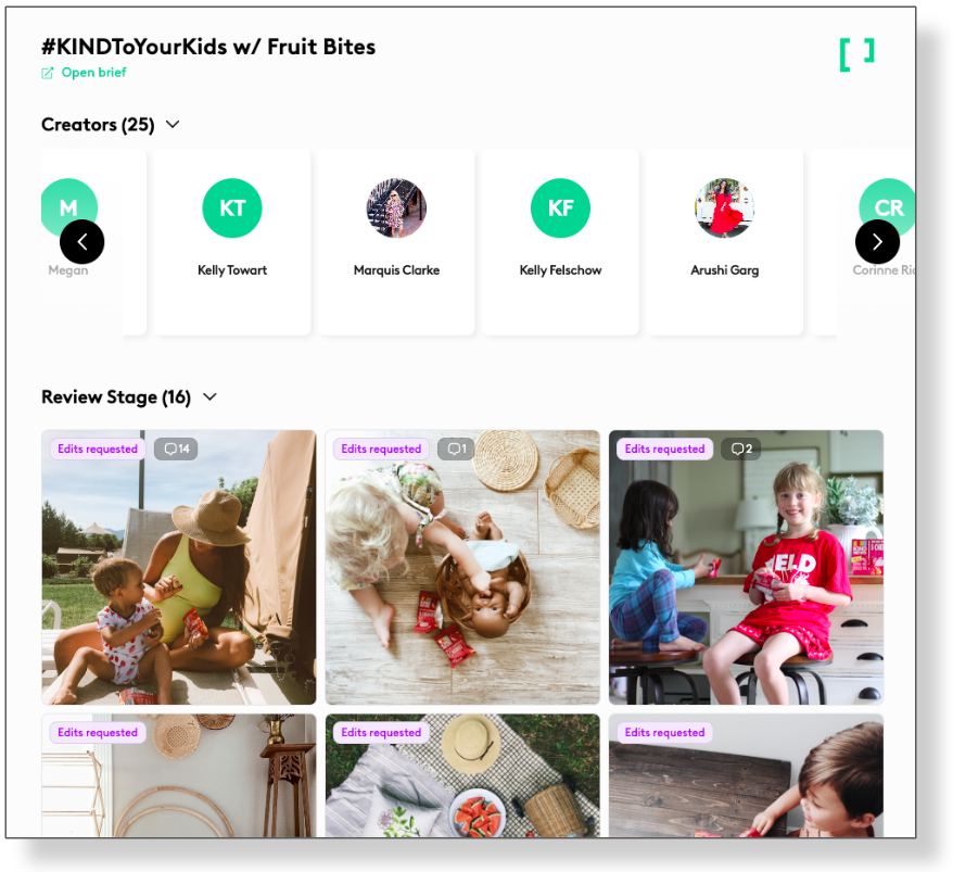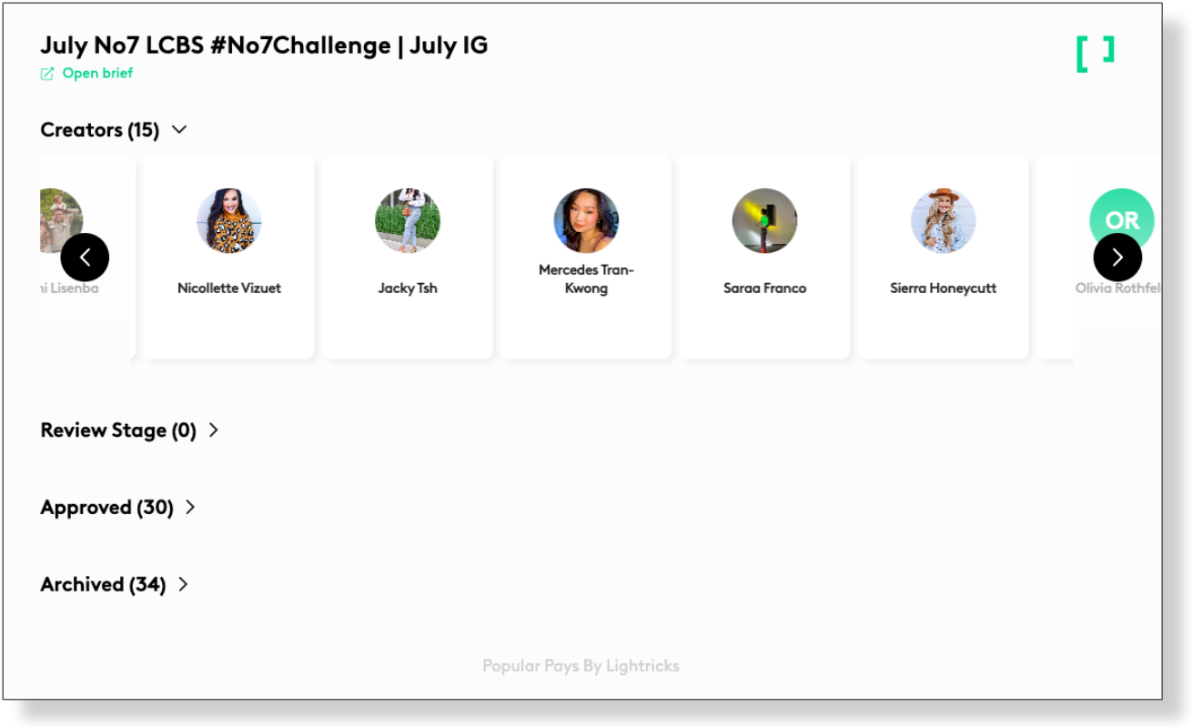 1. See a scrollable list of creators for this campaign. Quickly see and select your creators.